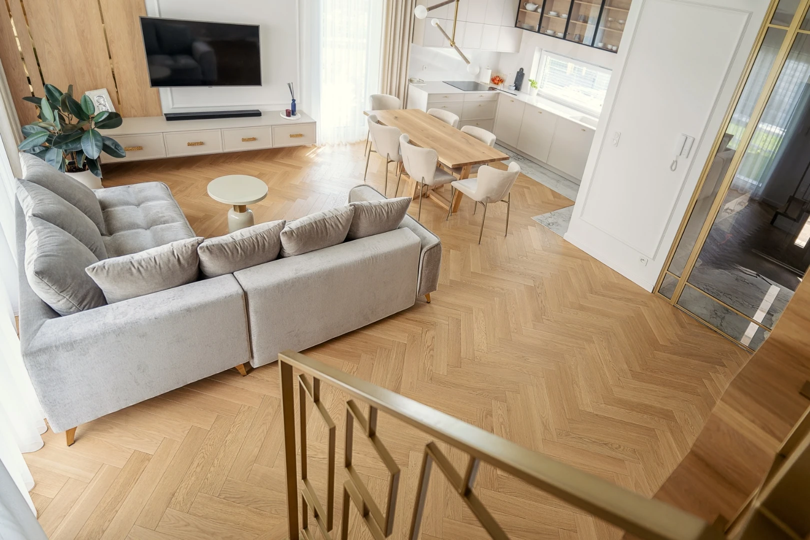 Zapraszamy do naszej galerii podłóg drewnianych, w której znajdziesz wyjątkowe inspiracje do aranżacji swojego domu lub mieszkania. Prezentujemy różnorodne realizacje, pokazując, jak naturalne drewno wprowadza do wnętrz elegancję, ciepło i ponadczasowy styl. Dzięki naszym zdjęciom zobaczysz, jak pięknie mogą wyglądać podłogi drewniane w różnych odsłonach – od klasycznych desek po nowoczesne układy w jodełkę.